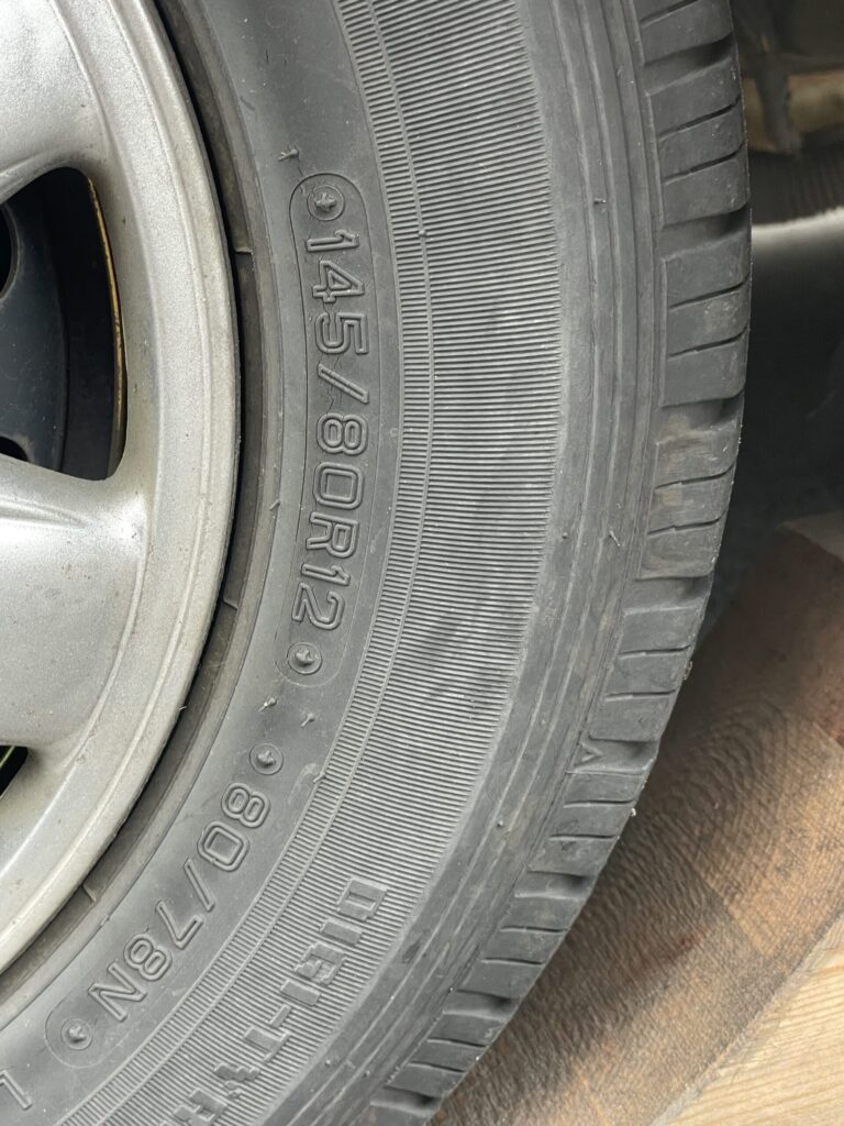 Doris offers this because Teal is on 12” rims. Sid brought two extra 165/60 12” tyres but if we need more 12” tyres then they are available, seen here on a hospitality bus. On tyres: Sid has now seen Bridgestone light truck tyres in 145/80 12” that look as if they would be superb gravel rally  tyres at £130 for four!