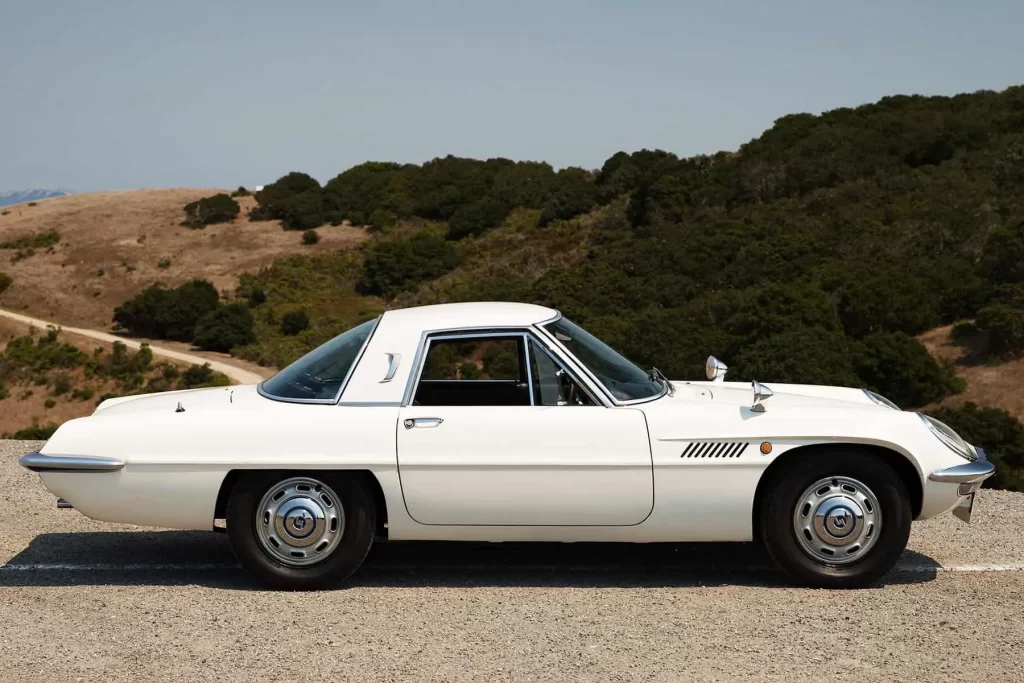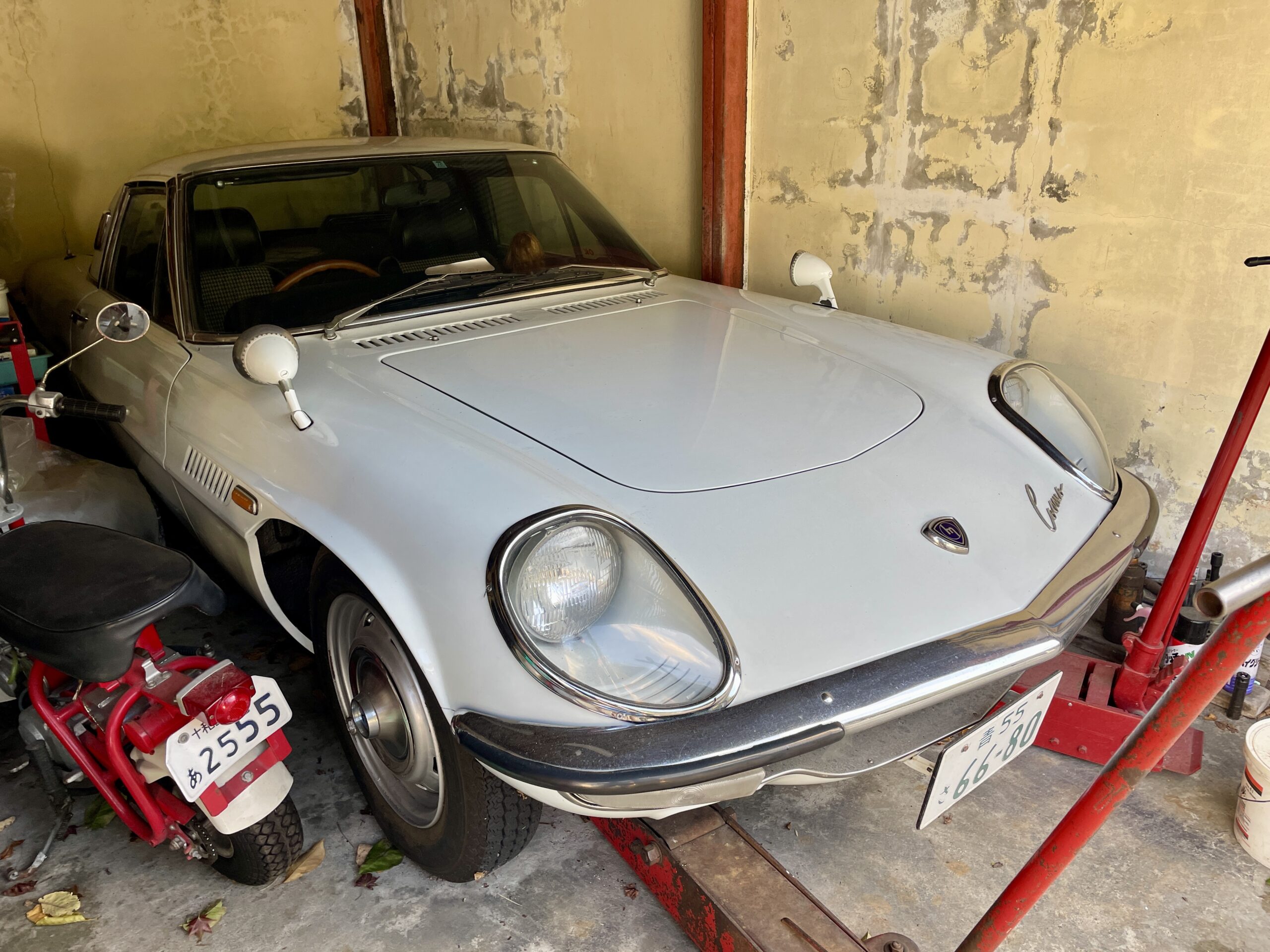 A bit of an aside from Kei cars, this is a Mazda Cosmo seen in a Cosmos garage. A very pretty car that was innovative in having a Wankel rotary engine and lovely lines.