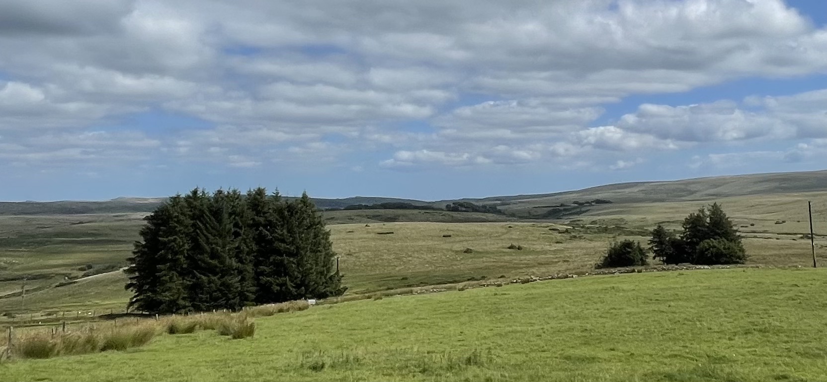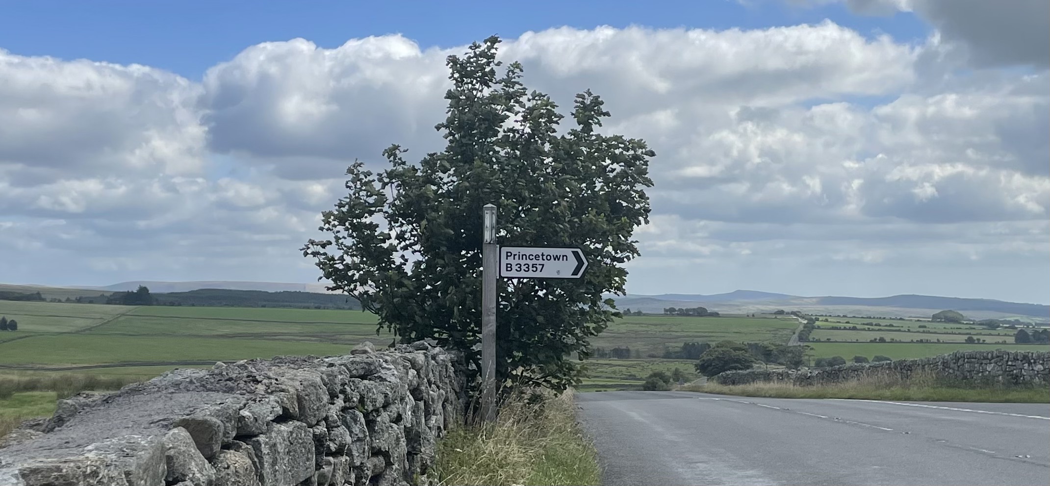 This is a long dramatic, persistent climb out onto Dartmoor, which today is more inviting than Conan Doyle portrayed it in The Hound of the Baskervilles. It is a sunny day on rolling hills with big views. At 1,492 feet it’s not the Grand St Bernard, but it does go on. Up, down a bit, more up, more up, some extra down but adding height. (Over 1,000 feet and so another 50p into the ice cream budget hooray.)