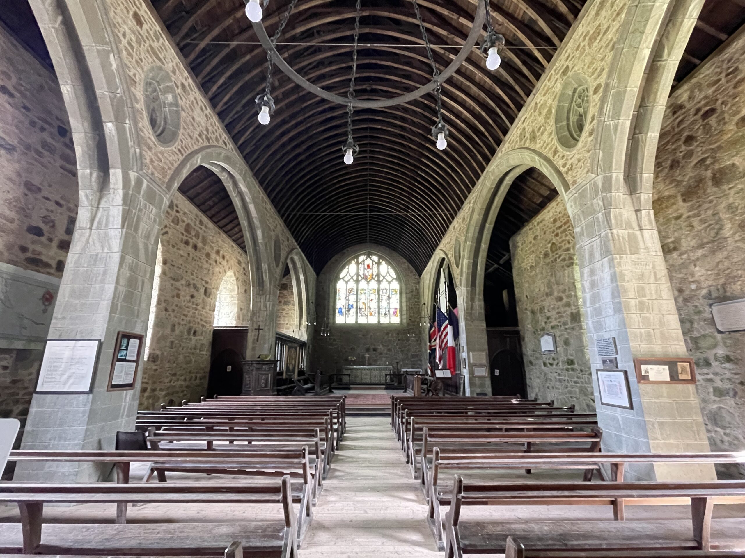 The stained glass was added later by patriotic American ladies to commemorate those who died in prison, mostly from disease. Sorry, Mr Madison.