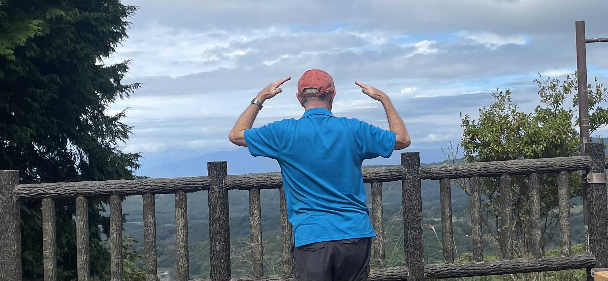 There ought to be many opportunities to see Mount Fuji. In this case it was in cloud, so Sid models the shape. Though he is not as big as Mount Fuji he is much closer to the camera.
