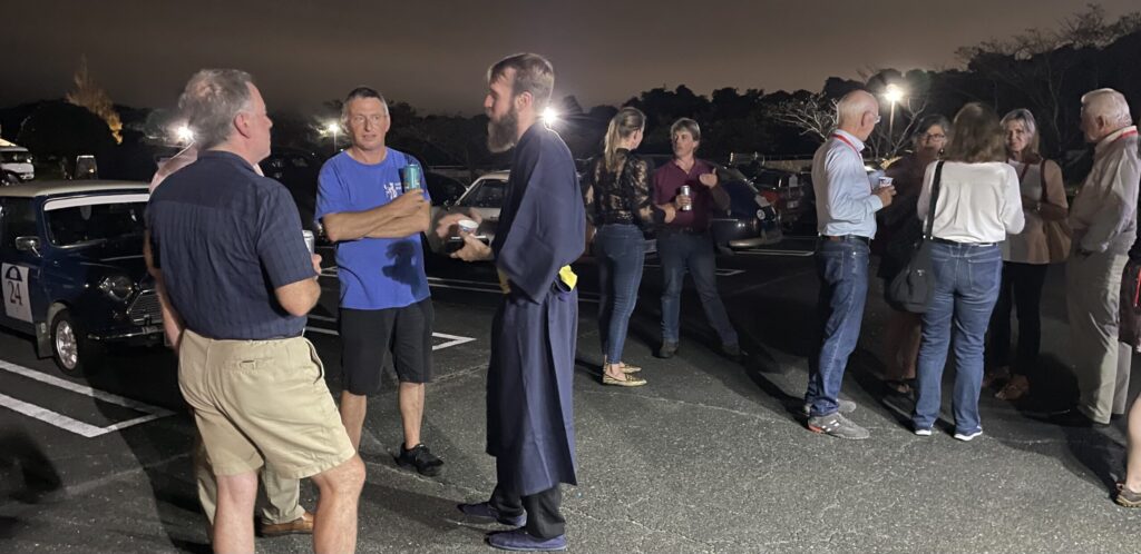The stop is at the Grand Mercure Lake Hamana Resort and Spa which is carefully set up to cater for large coach groups. A better route to evening happiness is the Sweeps’ Tailgate Party, to which all have brought many bottles.