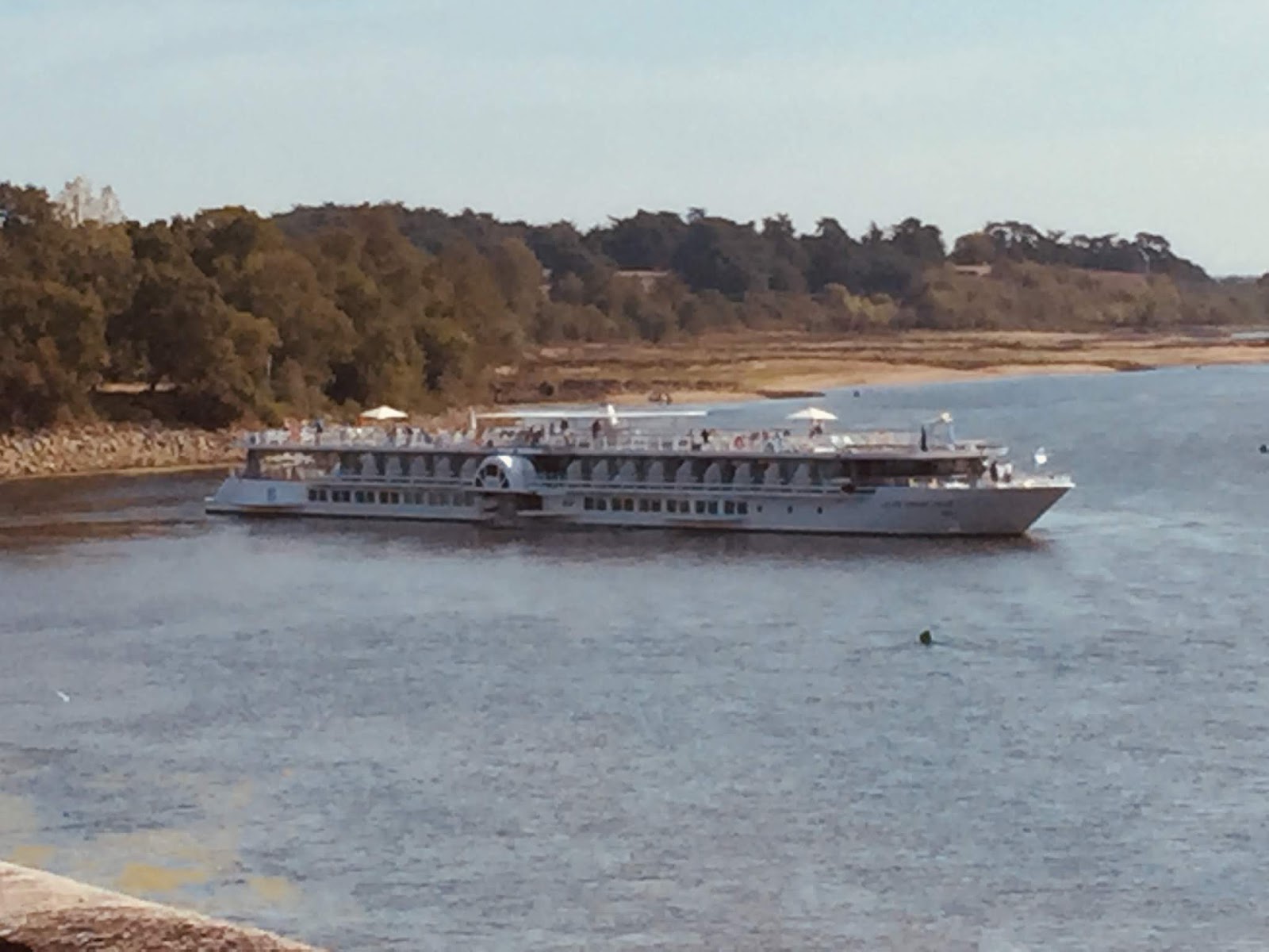 As ever we dearly love a flood marker. Here at Lire the Loire is quite wide but at this time of year (ie not flood time) it looks shallow so Sid was amazed to find a river cruiser turning around at Ancenis. It just does not look navigable.