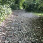 China clay, or kaolin is formed as the result of the decomposition of some of the feldspar in granite. Doris is rapidly realising that her degree in Chemistry (long since forgotten) actually included nothing about the chemistry of minerals, so she is as uninformed as the rest of us.  Kaolin is used for many things including drugs (remember kaolin and morphine?), insulators, facepacks, and giving the finishing touches to printed paper.  It is defined as a clay because it is sticky and fine-grained and can be moulded, and the stuff round here is especially prized because it is very white.  (Although there is a secret place to add a tiny helpful drop of blue dye too, but don’t tell anyone else about that.)