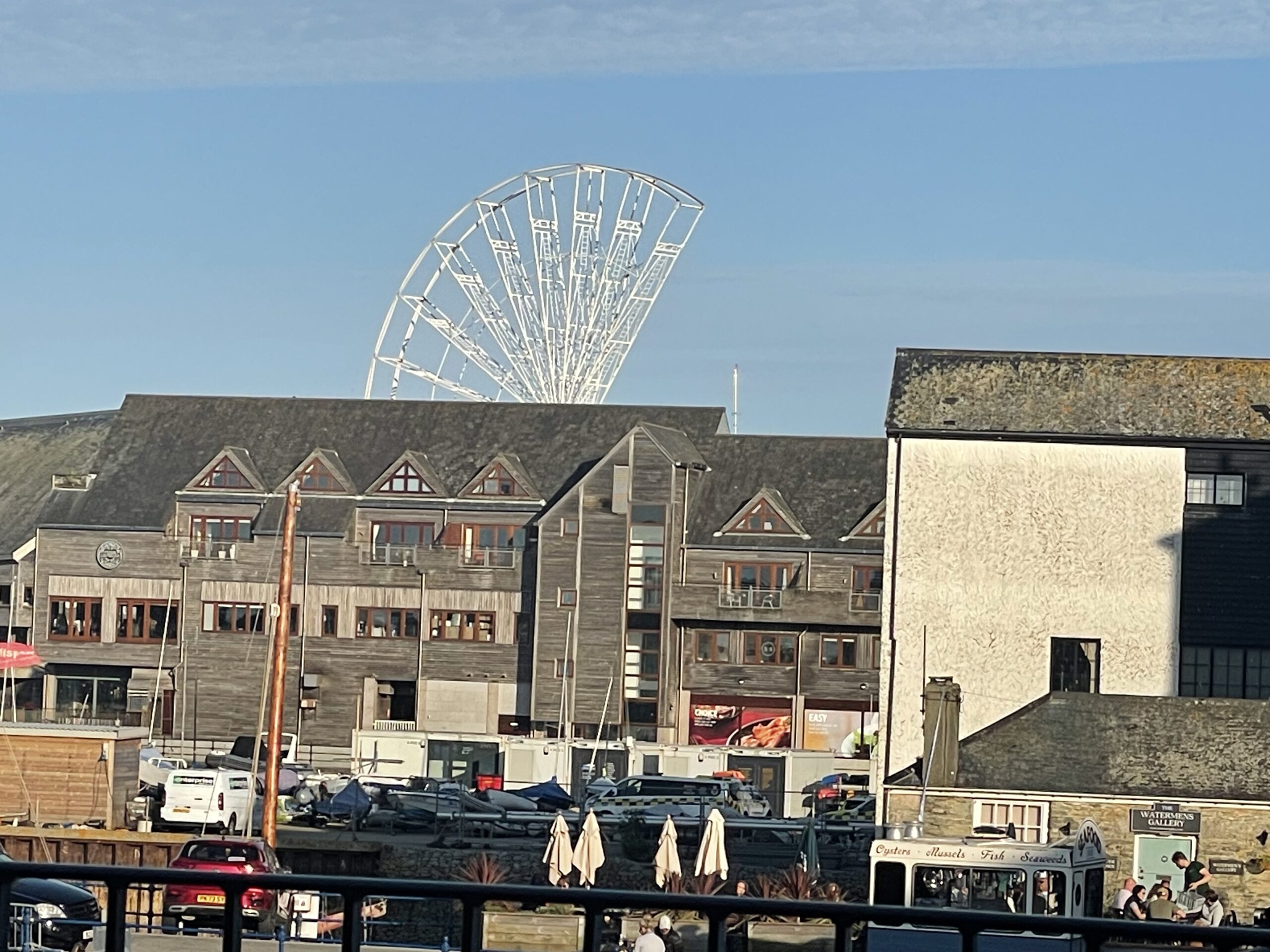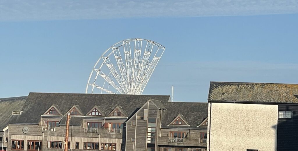At the start of this evening there was a large illuminated ferris wheel outside the Falmouth Maritime Museum.