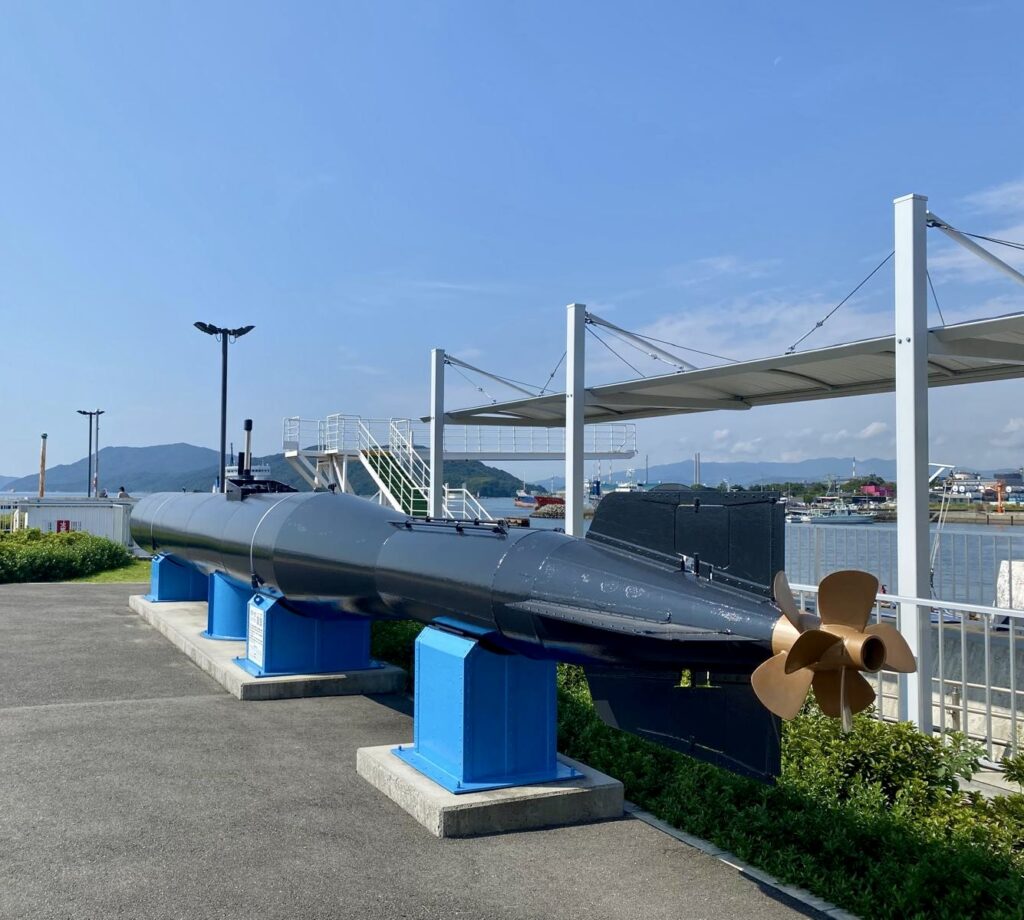 It is possible to drive onto the north of Kyushu. Instead RtG have decided to use a ferry for maximum charm. At the ferry port there is time to examine this one man kamikaze torpedo cum submarine. It would be a very cost effective weapon. One man and a small submarine for much damage to a US aircraft carrier. It is the certainty of the one death rather than the lottery of so much military survival that seems abhorrent.
