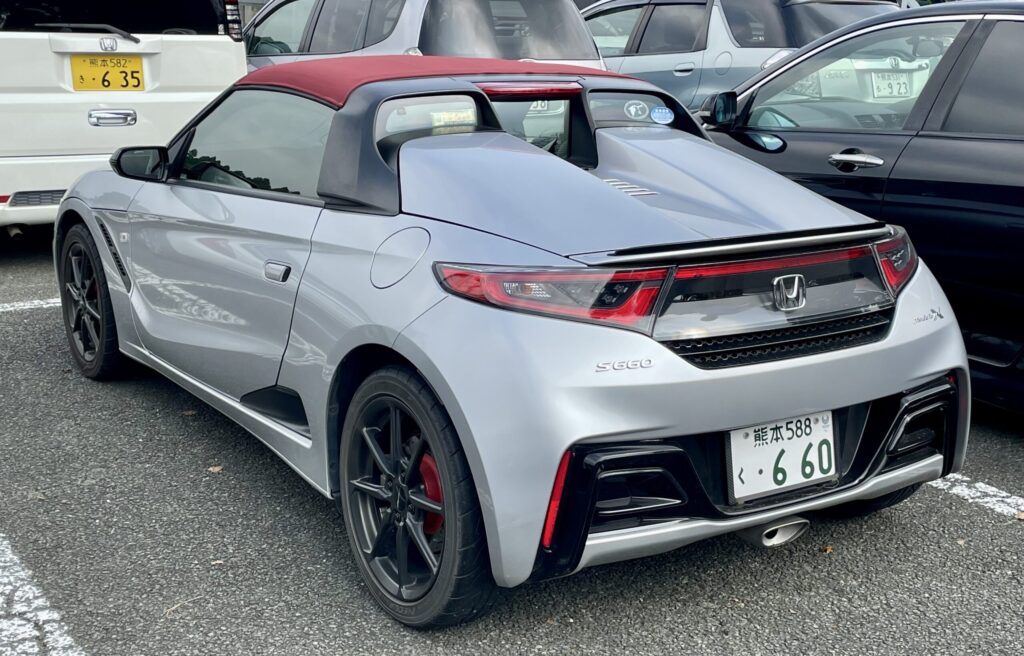 This is an S660 Honda kei supercar, mid turbo engined (660cc), rear wheel drive, targa topped, baby NSX. Very cool.