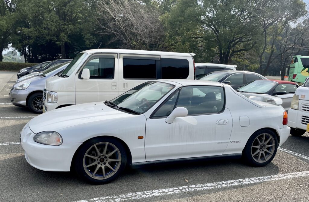 It’s based on a Civic, so front wheel drive even though it has mid-engined looks, and as you can see absolutely dwarfs the kei people carrier behind it.