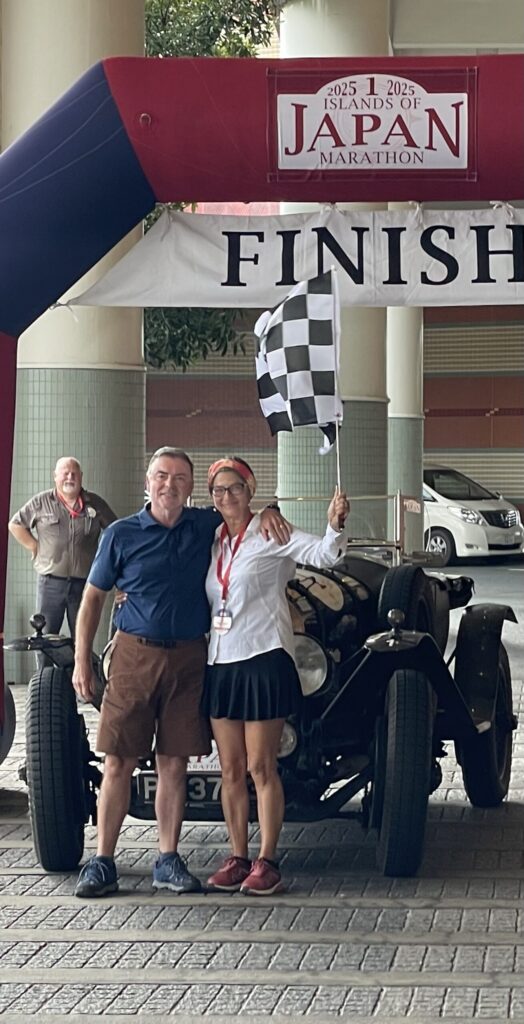 After one more regularity it is down to Fukuoka, the Hilton Sea Hawk and the finish. Here below Graham and Marina with the Bentley Super Sports 5.3, the winners of the pre-war class.