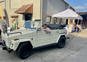 But what is Sid driving? It is a Kubelwagen, a toughened up Dub-based two wheel drive jeep. In this case all rather breathed on. It feels well able to manage the local roads and is a lot of fun. In the background are beans and burgers and crates of root beer, hosts Matt and Linda, Joe and Betka, plus an array of car-crazies. Remember, everybody is normal until you get to know them.