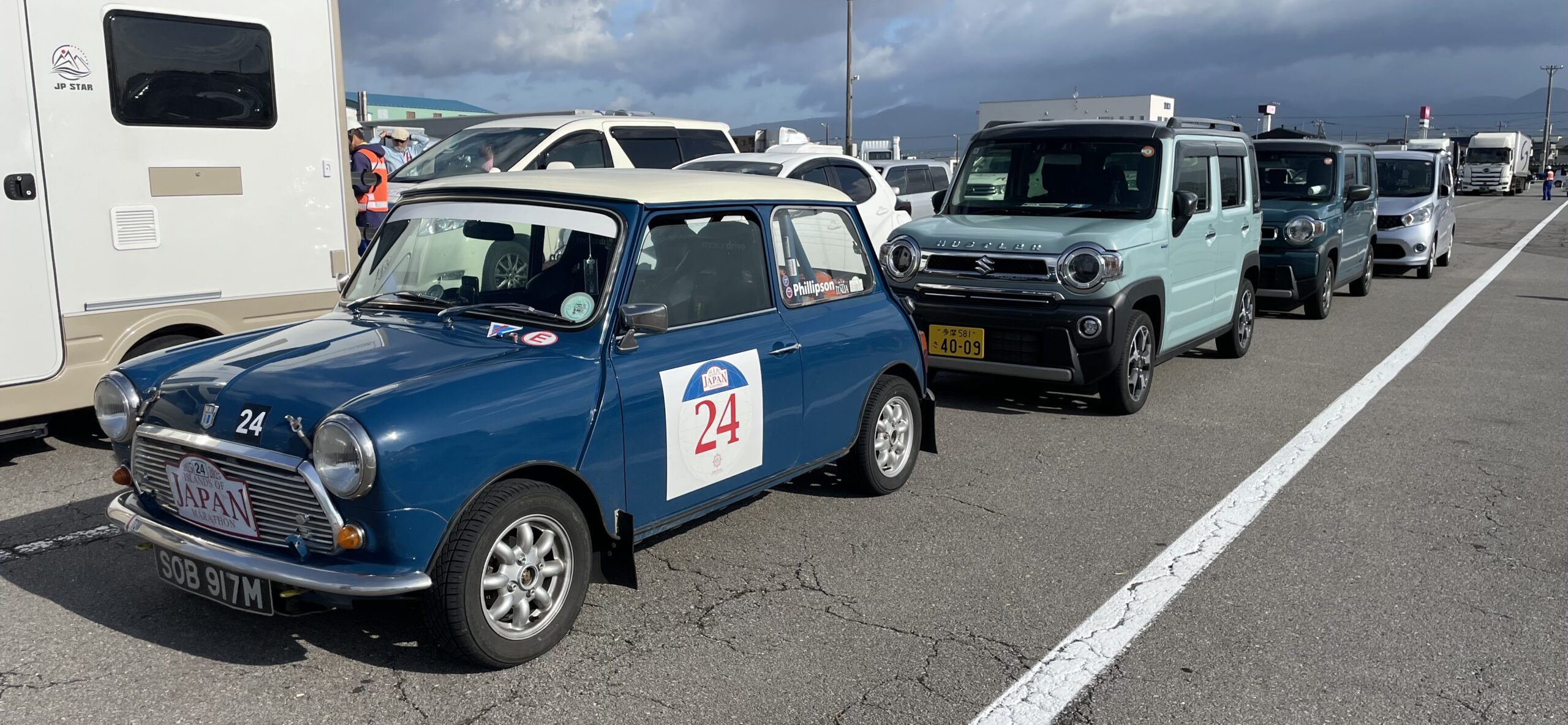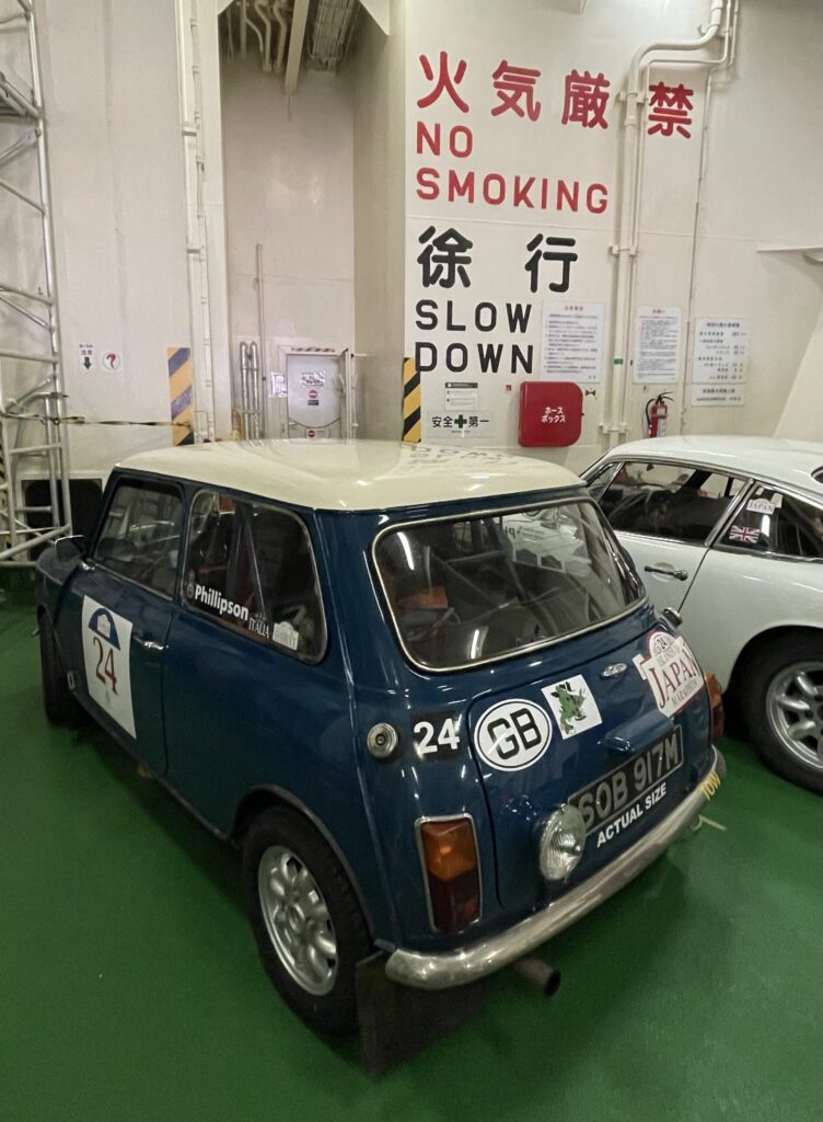 Job Number 1 today was to catch the ferry. The Mini was immediately and correctly categorised as a MicroCar despite not having a snout like a Frenchie bulldog (Sid will enlighten you further on this topic later) and tucked into a handily tiny space on board. All the Japanese passengers took full advantage of the no-shoes rest areas, while the awkward foreigners resorted to the Priority Seating For The Hard Of Bending.