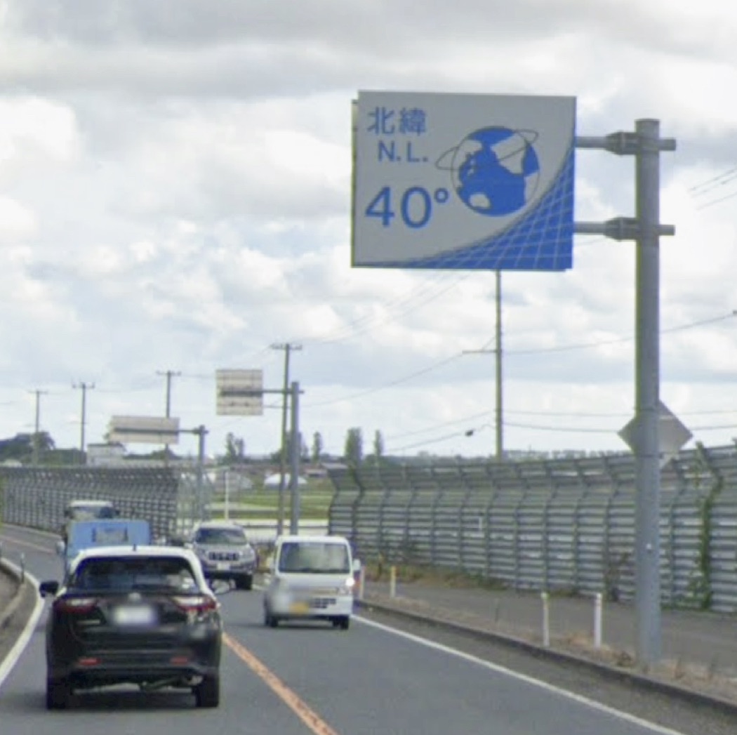 We went through the 40th Parallel as we approached Akita, so hello! to our friends in Siping, Philadelphia and Minorca. Doris was a bit slow with the camera, so after a totally disproportional amount of work with Google Streetmap we present you this exquisitely uninteresting screenshot.