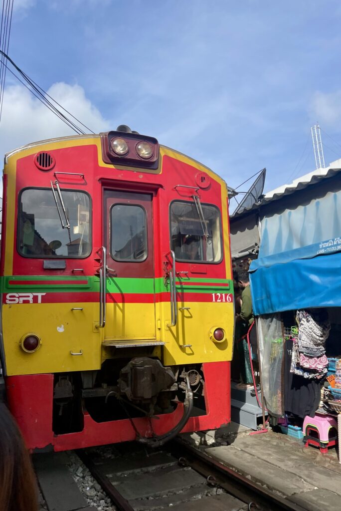 Booking the flights and hotels we hadn’t realised we’d bought accompanied (like guided but without the helpful commentary) sight seeing in the package. Perhaps it is a contractual requirement that the Maeklong railway and the floating market be visited.