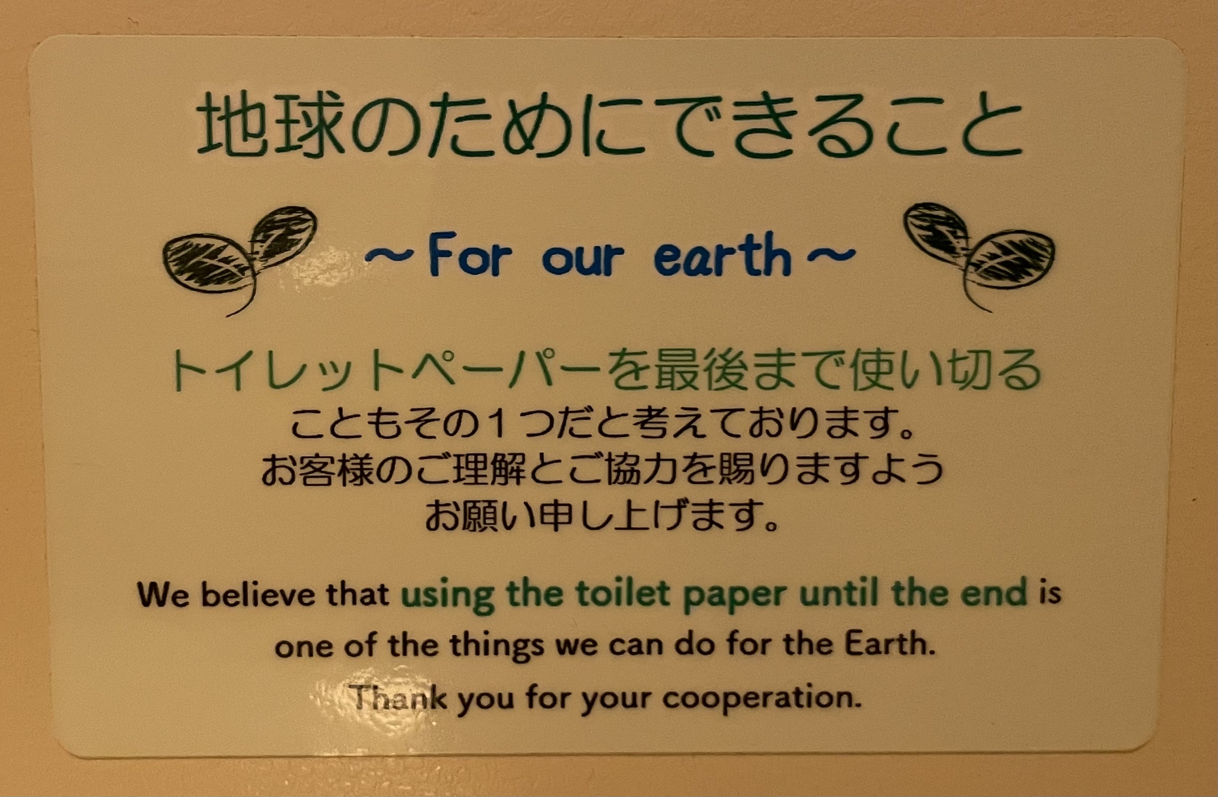 Save The Planet One Sheet At A Time! – This is not a one-off photo but a sign that is in every toilet. Maybe it used to be a sign of politeness to only offer visitors a complete toilet roll? Mind you, as it is all single ply… well, the less said about that, the better.