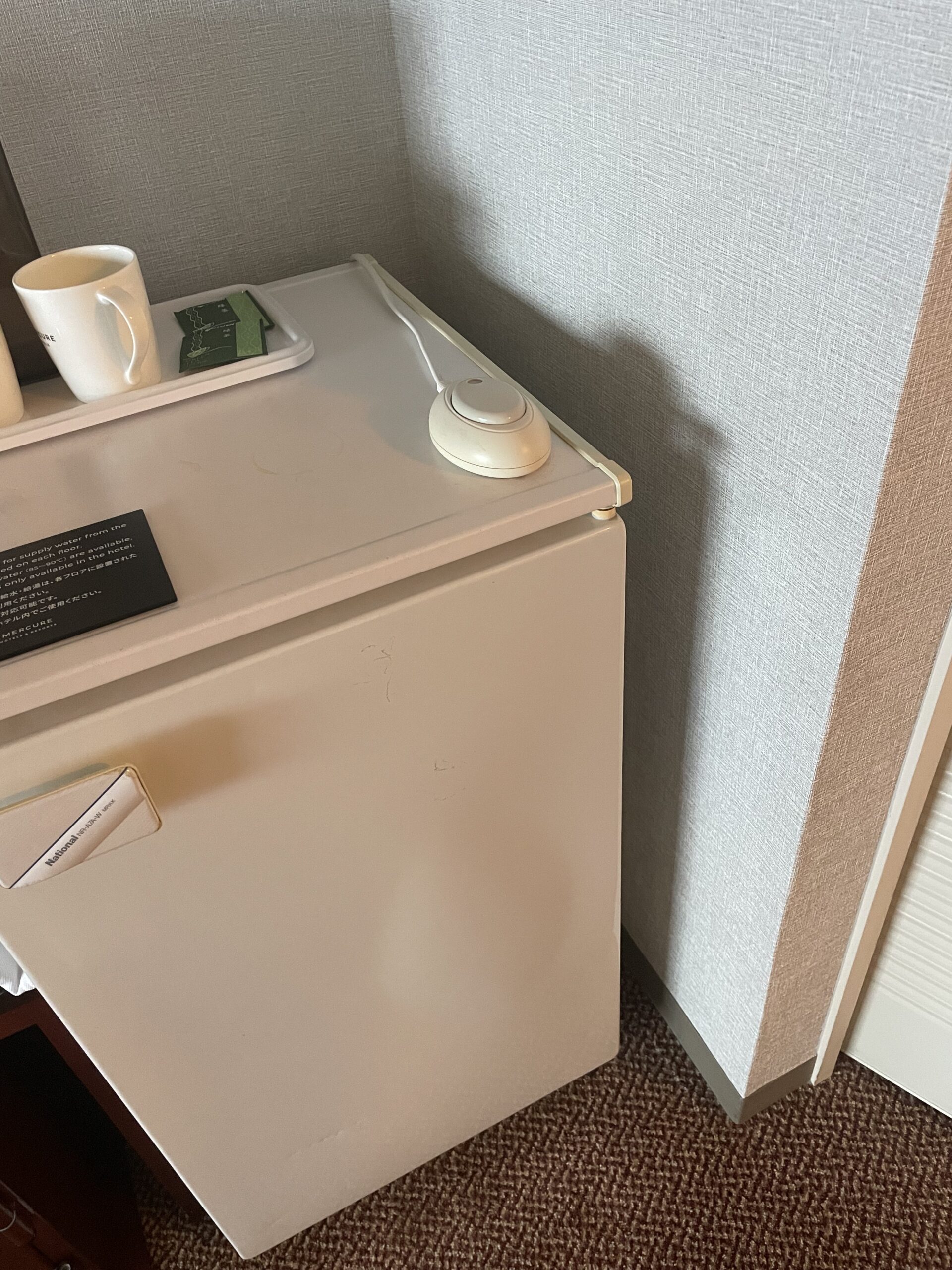 Doris has become a dab hand at finding the plug behind the fridge, but they can be tricky to reach, so a big thumbs-up to this hotel who have installed a large on-off switch on top.