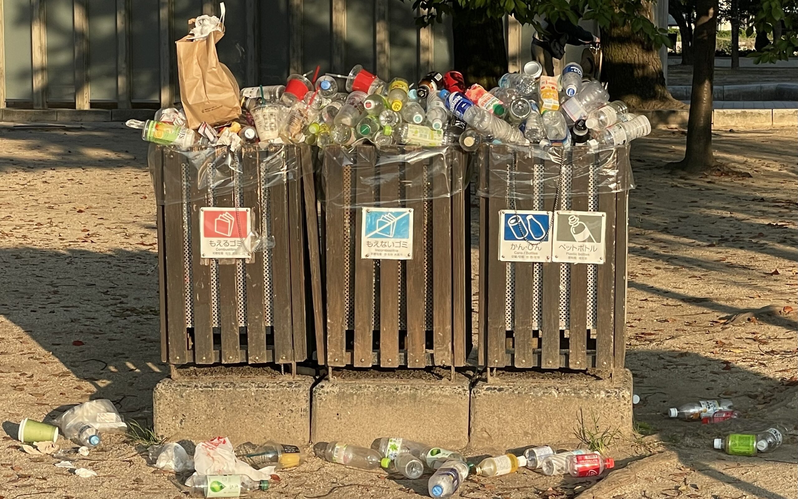Bins Make Rubbish – It is possible that the absence of rubbish bins in Japan goes back to the Sarin attacks on the subway, when people became uneasy at the sight of even small abandoned things. The absence of bins in the country is total, even by the doorway to enter a hotel, or outside a shop selling food/snacks (you have to take the wrappers back inside). But this photo from the centre of the Hiroshima Peace Park shows you another problem with bins, which is that they actually create rubbish. Every item here has been carefully deposited by someone who thought they were doing the right thing, and the result is a tidal wave of rubbish that is blowing across the park.